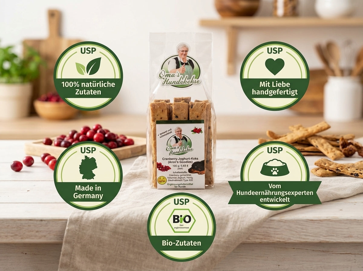 Die Kekse werden mit dem Anspruch gefertigt, Hunden Freude zu bereiten und gleichzeitig ihre Gesundheit zu unterstützen. Ein Stück Tradition – modern umgesetzt für das Wohl deines Lieblings.